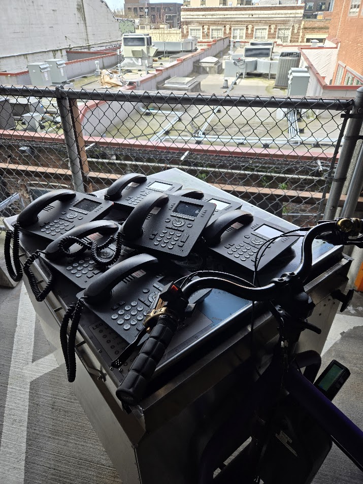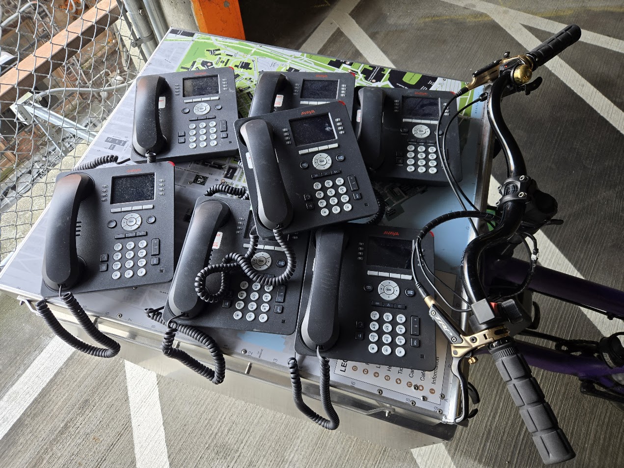 Today I delivered 19 landline phones from a cluster of IT bros in The Tower to another cluster of IT bros in the 4545 building. Along my route seven of the phones squirmed loose from their file box. Jostling free in the electric ass bathtub, they asked if I could get a picture in the parking garage ::: March 23, 2026 ::: call it the one and only time I’ve delivered 19 landline phones ::: call it a calendar date to commemorate. So I got a photo and one more too and then I delivered three boxes full of phones.