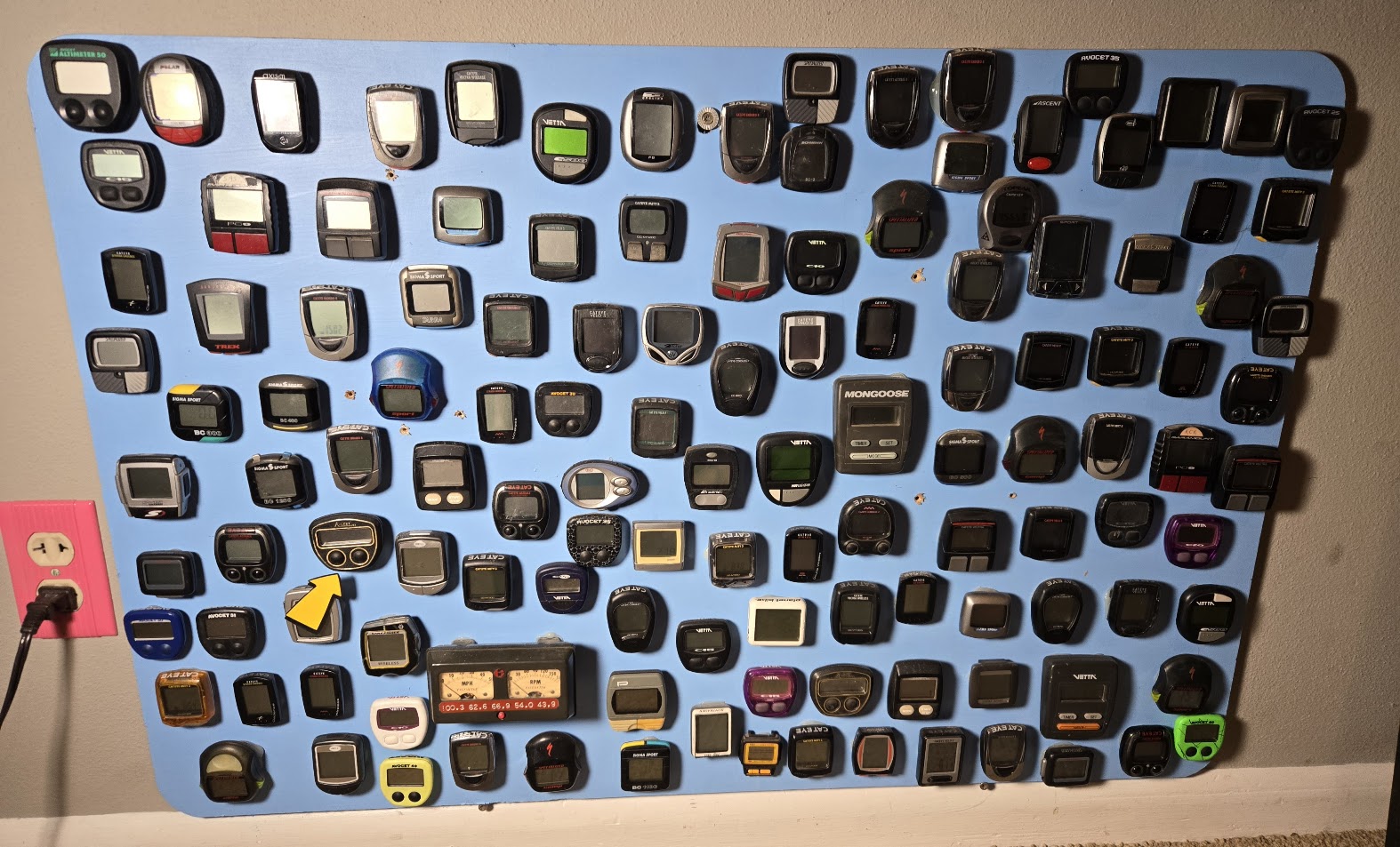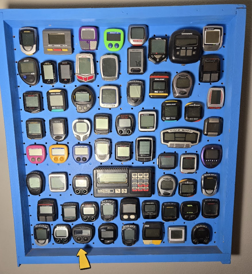 As a mechanic at Bike Works I had a bucket full of cycling computers chucked in one at a time, one refurbished old bike with an old computer at a time. Some of them made it onto the “artwork” you see in these photos.