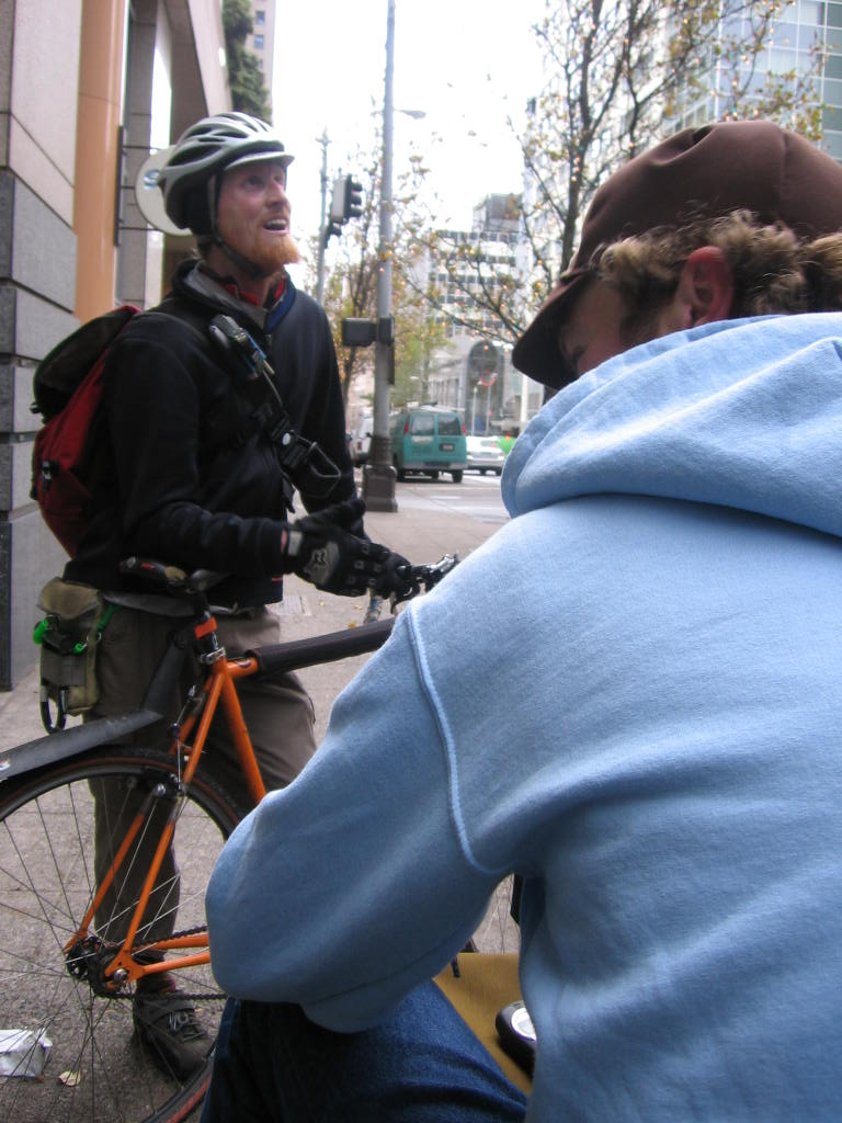 The day before yesterday in the alley I had thoughts of pausing and leaning my bike on a dumpster for a photo depending on what just right light through yonder building breaks. Looking to sum up the U district in one digital snap shot. But as I rolled up to an ideal spot, there was a guy pissing by a dumpster. He was in no hurry and wasn’t trying to disguise it at all. So I kept rolling on to the station and waited for the elevator with my bike.