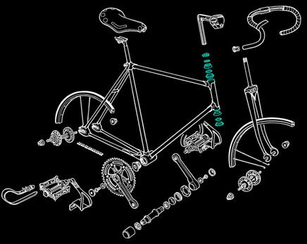 Size 57 Frame Reynolds 520 Butted Chromoly Tubing Fork 4130 Chromoly Cross Cranks Shimano Sora 2pc 34/50t BB Shimano Outboard Bearing F.Derail Shimano Sora R.Derail Shimano Sora Shifter Shimano DuraAce Bar-End on the downtube Br.Levers Cane Creek Brakes Cane Creek Rear, Avid Front Gear Shimano HG50 9spd (11-25t) Rims FSA RD-60 wheelset black Tires Continental Gatorskins Pedals Shimano spd Handlebar old old flat bar hacked to 19.5” Stem Salsa older than dirt Seatpost FSA Alloy with some wicked setback Seat Flite with classic nose peel taped Headset Ahead 1-1/8" w/Alloy Cup Color Black is the new Thursday Spokes Sapim Grips Ritchey True Grip Extras Fenders and Cup Holder Note Specifications are Subject to Change