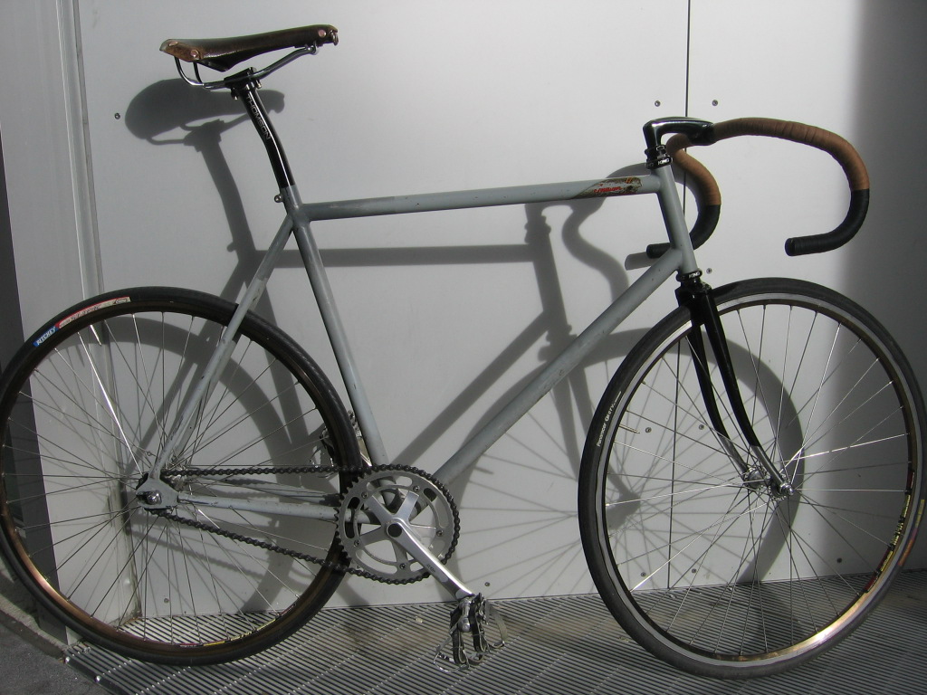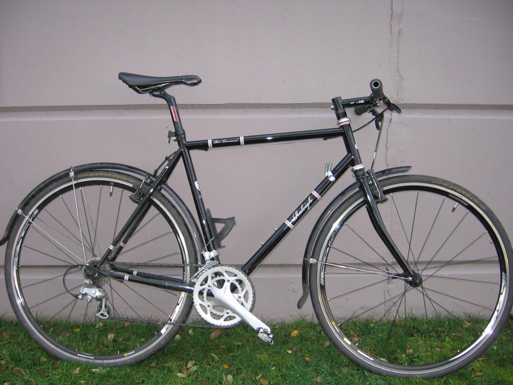 The bar end shifters bumped down to the downtube in a resourceful use of resources readily available. The pedals never made it past the packaging because it’s personal like the saddle see Selle San Marco. Plan to give the derailleurs a chance and try the shifting thing for a while because if I strip this bike down to one gear it really will look just like all the other pilderwassers.