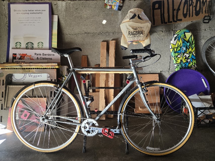 I see a lot of bikes out there but I don’t really look at very many of them. I look past them, through them, over them, among them, around them. Once in a while I stop and actually take a closer look when a bike gets my attention. A classic steel road bike with its clean lines, gets my attention.